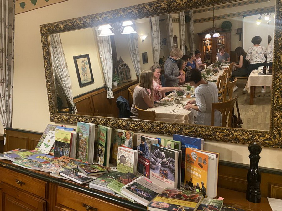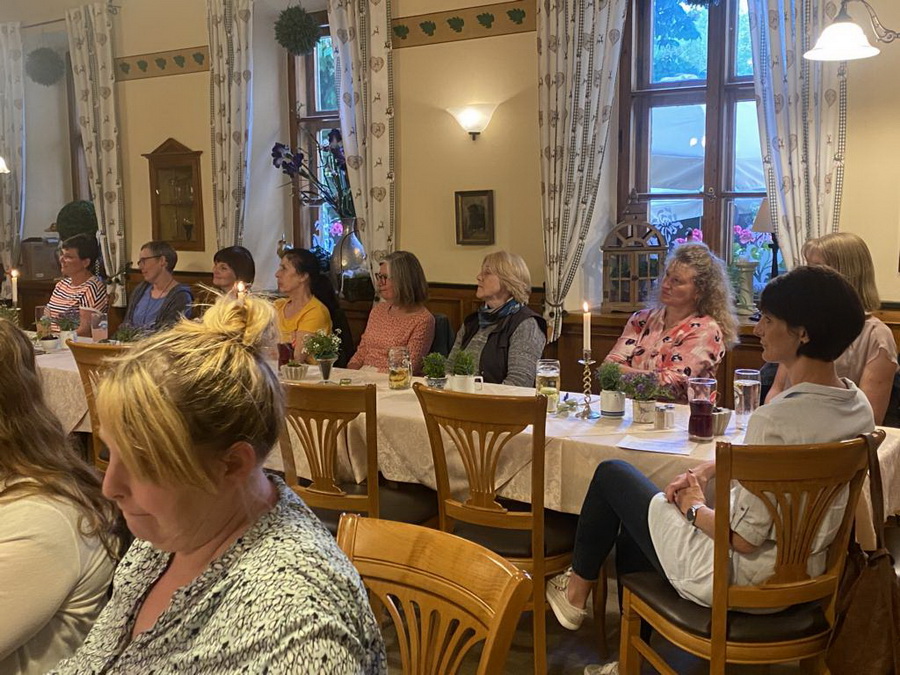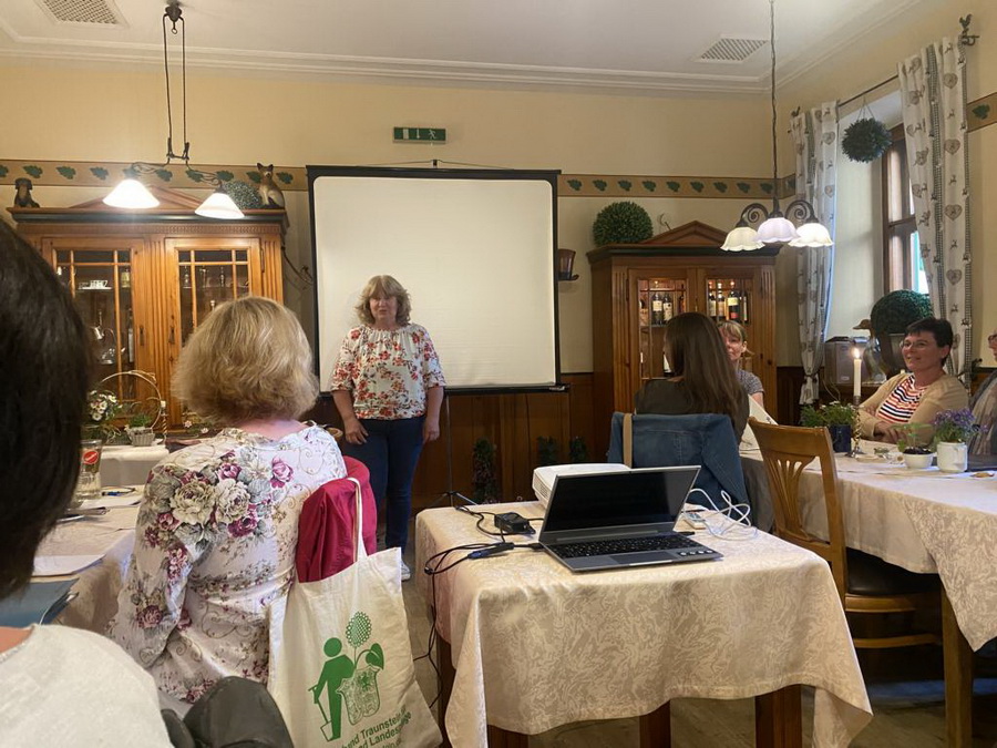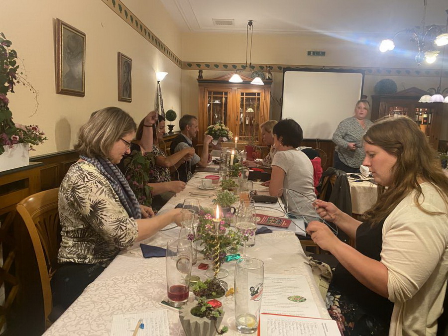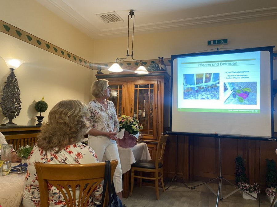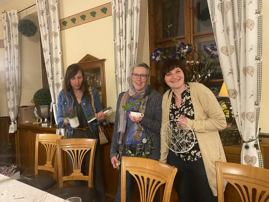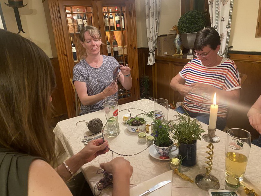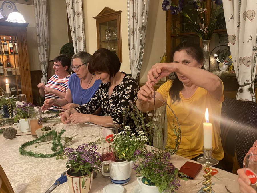 Wie knüpft man an an die Zeit vor Corona, wie begeistert man Kinder aufs Neue für die Natur und das gemeinsame Erleben? Jugendleiterinnen aus 13 Gartenbauvereinen trafen sich in Obing zum Ideenaustausch. Unterstützt wurden sie von der Kreisjugendbeauftragten Maria Zehentner und ihrem Team von Jugendsprecherinnen. Die 4 Jugendsprecherinnen Tina Mangold, Heidi Stockhammer, Birgit Furtner und Doreen Maierhofer wurden an diesem Abend durch Neuwahlen in ihrem Amt bestätigt. Birgit Furtner vom gastgebenden Verein Obing zeigte lustige Bilder von den Aktivitäten der „Coolen Würmer“, der Kindergruppe des Vereins. Die Kräuterpädagogin Martina Kriechbaumer hatte einen bunten Wiesenblumenstrauß mitgebracht. Aus diesem stellte sie einzelne Pflanzen vor, deren Blüten essbar sind. Hollerkücherl, Gundelrebe in Schokolade, gefüllten Kapuzinerkresseblüten und Ringelblumengelee sind nur einige der Leckereien, die nicht nur die Kinder begeistern werden. Die Fachlehrerin Sieglinde Maier-Stöhr vom Amt für Ernährung, Landwirtschaft und Forsten stellte das bayernweite Pflanz- und Ernährungsprojekt „Wissen, wie’s wächst und schmeckt“ vor. Dabei pflanzen Schulkinder gemeinsam mit Lehrern und Mitgliedern eines Gartenbauvereins Salate, Radieschen und Schnittlauch, pflegen die Gartenkisten und bereiten am Ende daraus leckere Wraps zu. Auch einen konkreten Basteltipp konnten die Jugendleiterinnen ausprobieren: Drahtringe wurden mit Wolle und Draht umwickelt und mit Blüten und Gräsern verziert, was hübsche Wand- oder Türdekorationen ergab. Am Ende wurden drei Bücher für die Jugendarbeit verlost, über die sich die Vertreterinnen der Vereine Fridolfing, Altenmarkt und Freutsmoos freuen dürfen. Viele Ideen und frische Motivation brachten dafür alle Teilnehmerinnen nach Hause.