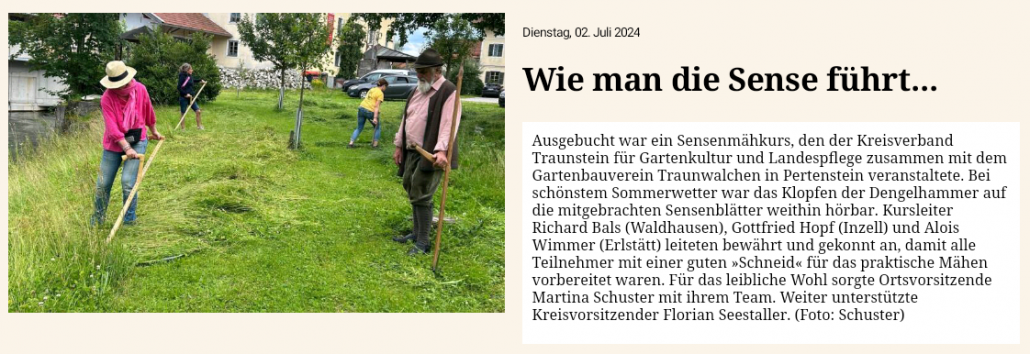 Sensenmähkurs am 22. Juni in Traunwalchen