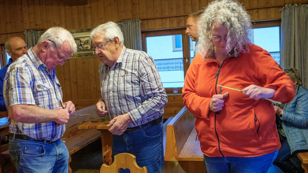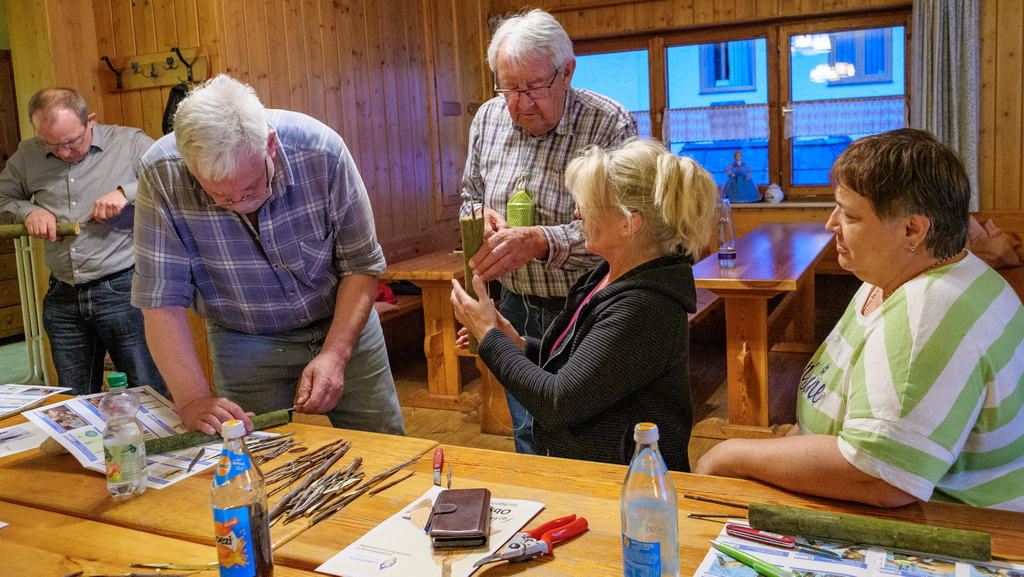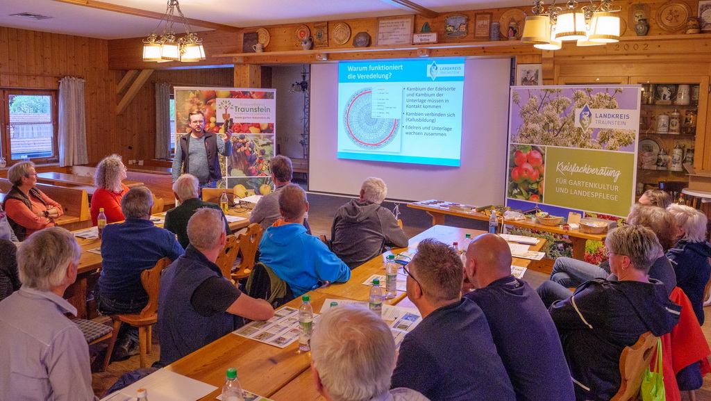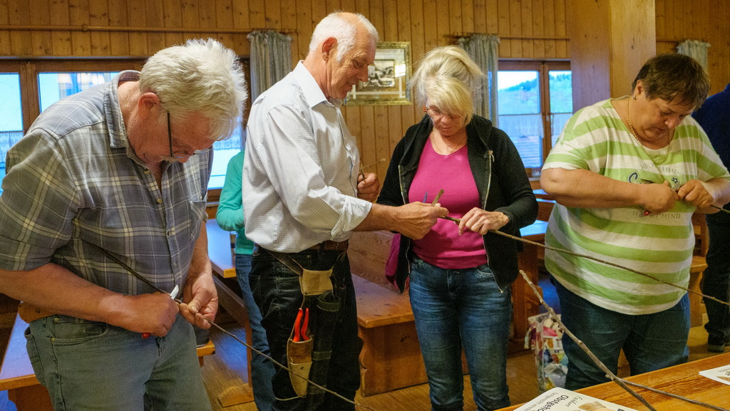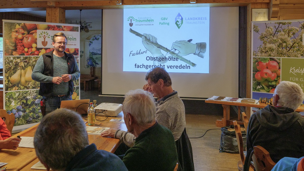 Wie alle Jahre gut besucht war der traditionelle, abendliche Veredelungskurs rund ums Obst. Kreisfachberater Markus Breier führte in Theorie und Praxis durch das Programm. Praktische Unterstützung und viele handfeste Tipps gaben den vielen Teilnehmerinnen und Teilnehmern Hans Gschirr, Gottfried Hopf, Sepp Mörwald, Hans Seehuber und Alois Wimmer.