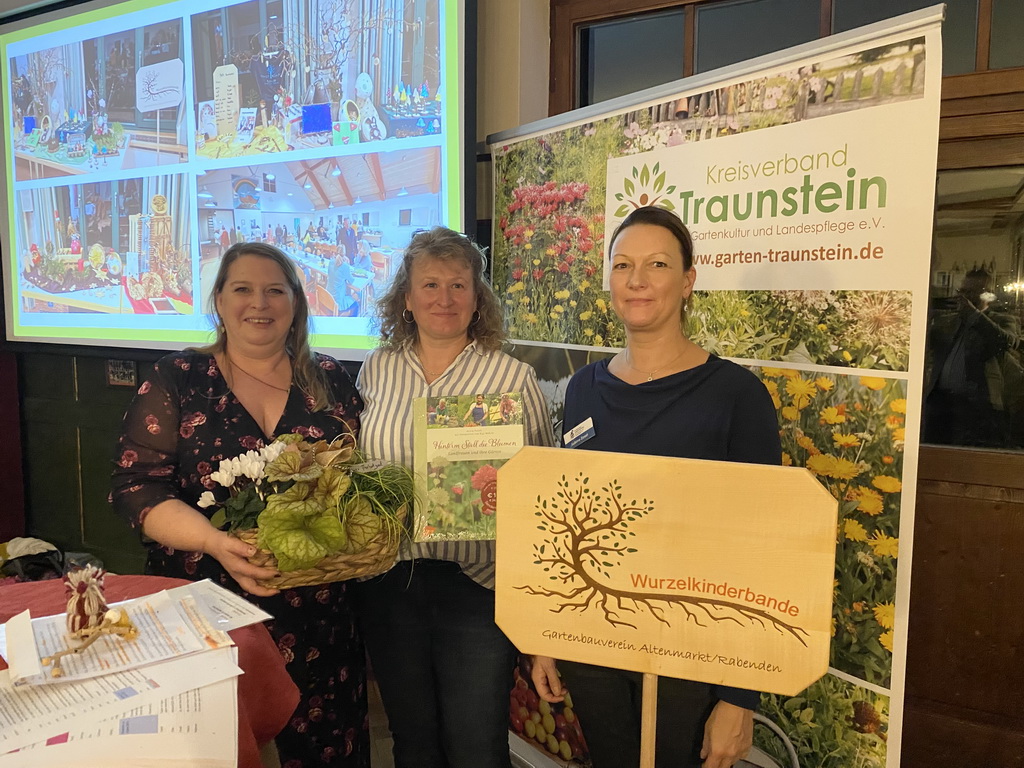 Nach einem gemeinsamen Abendessen und Austausch an den Tischen folgten zwei Beispiele guter Vereinsarbeit. Hans Wimmer, Vorsitzender des Gartenbauvereins Haslach, stellte den Krautacker des Vereins vor, der nun im zweiten Jahr sei und sich mehr und mehr zur grünen Mitte Haslachs entwickle. Gemüseanbau, Gemeinschaft und Freude kämen beim Garteln im Krautacker besonders gut zusammen. Das zweite, gute Beispiel war die Vorstellung der Aktivitäten der „Wurzelkinderbande“ in Altenmarkt. Monika Trenker stellte exemplarisch das Jahresmotto „Blüten“ mit Rezepten, Gruppenstunden und spielerischem Erkunden der Natur und ihrer Wunder vor.