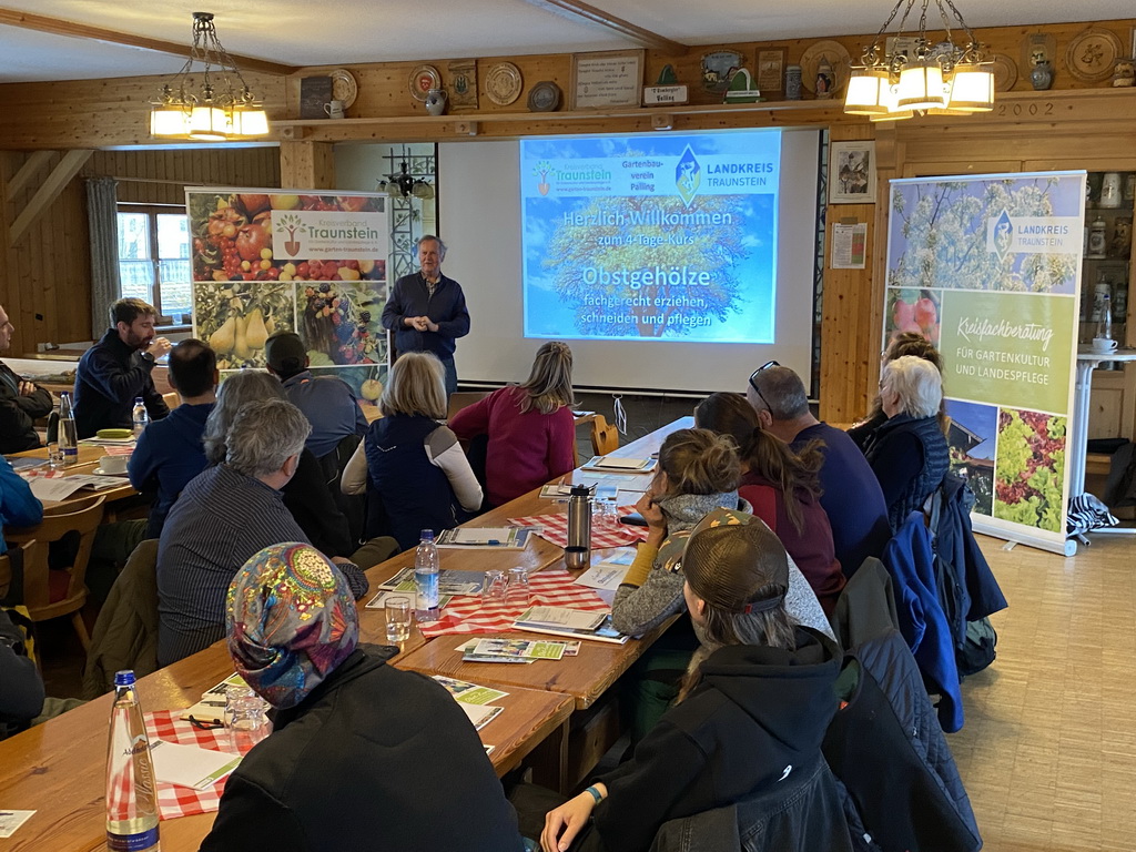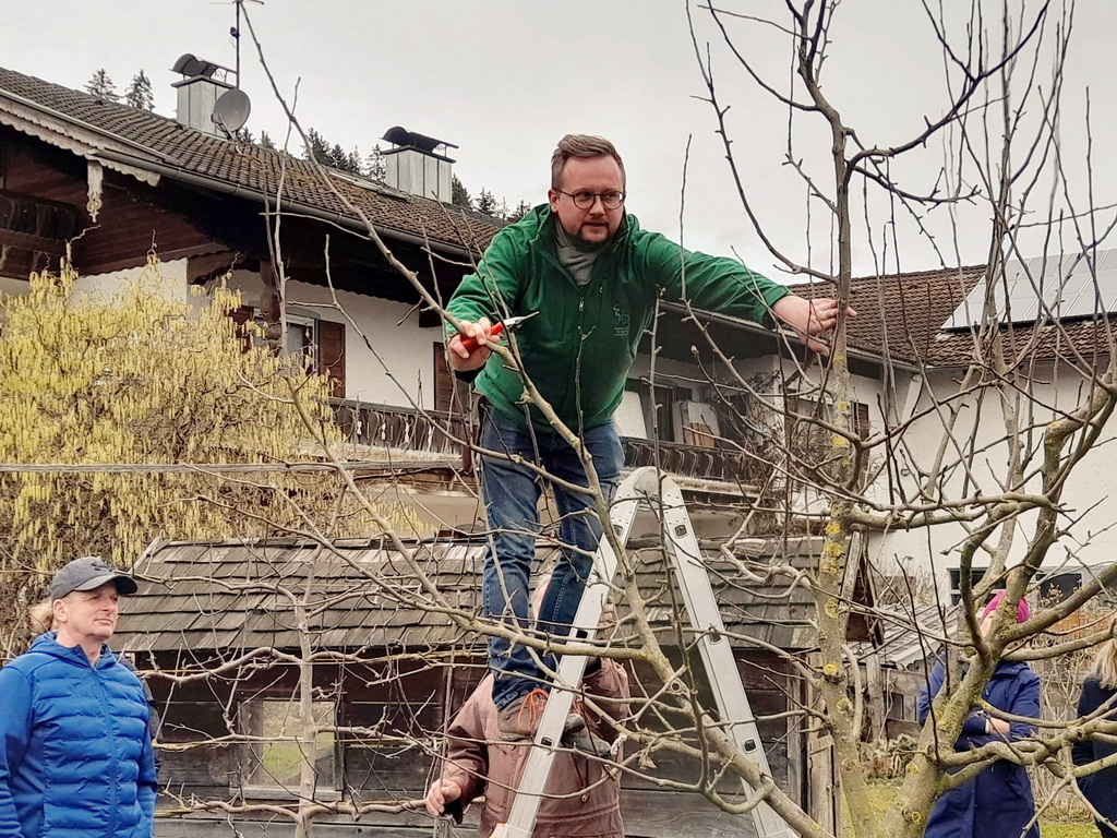 Alljährlich gut besucht ist der sehr lohnende „große Schnittkurs“ von Kreisfachberater und Kreisverband in Palling, bei dem es nicht nur um die fachgerechte Erziehung und Schnitt von Obstbäumen geht. Grundlagen des Obstbaus für daheim, der Oeschberg-Palmer-Schnitt für Halb- und Hochstämme, die Spindelerziehung und sogar Säulenobst werden besprochen und geschnitten, auch Obstspaliere, die richtige Düngung, Tipps zur Pflanzung, zur Pflege, der Sortenwahl, zu Krankheiten und Schädlingen, besonders der Wühlmaus und die Beantwortung aller Fragen der fast 40 Teilnehmenden füllen mit Schnittpraxis die vier Tage umfassend.