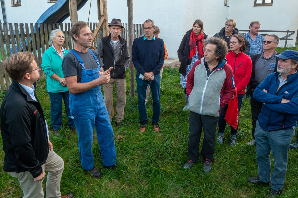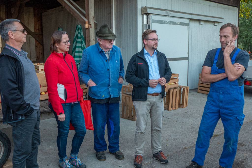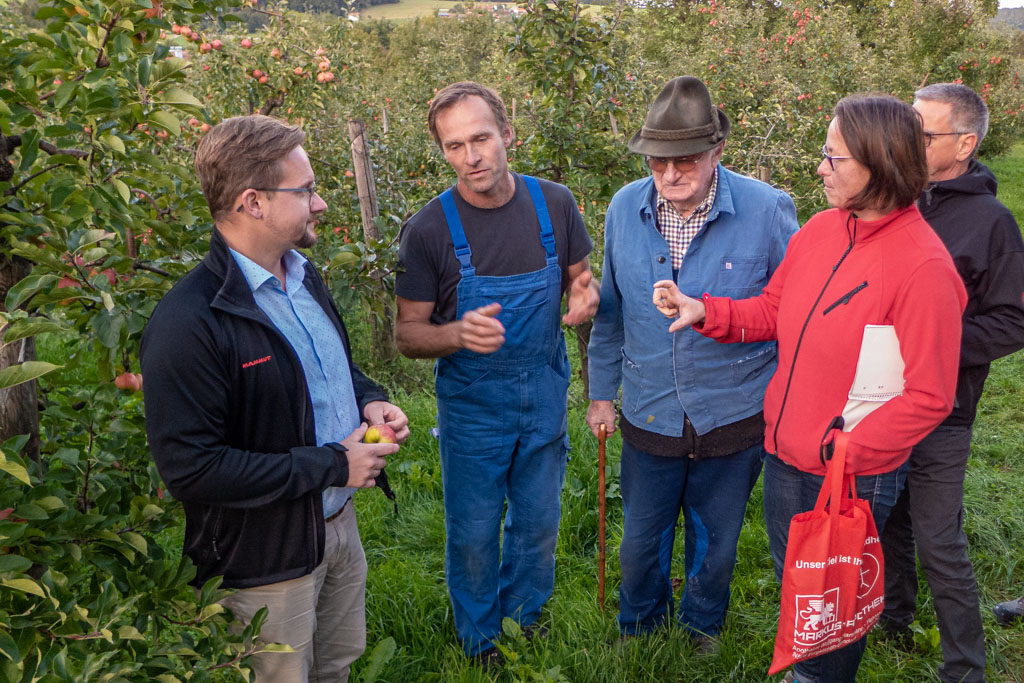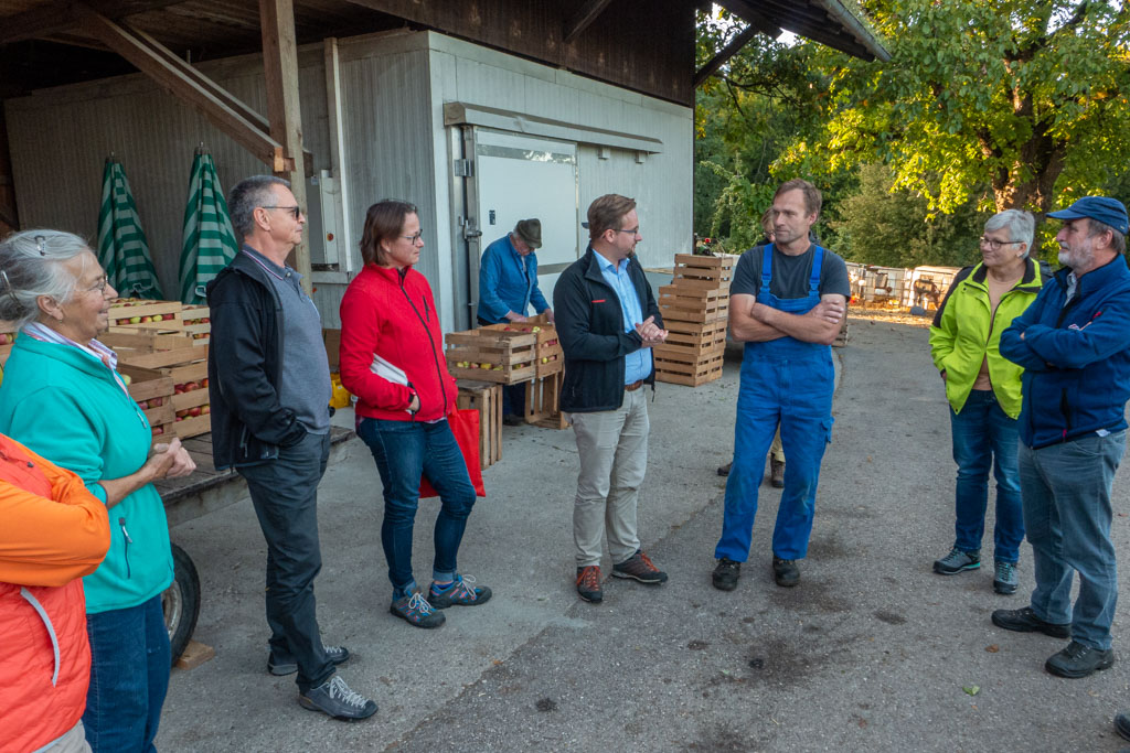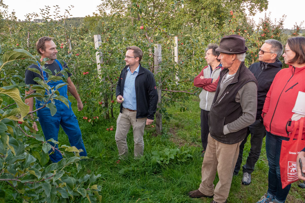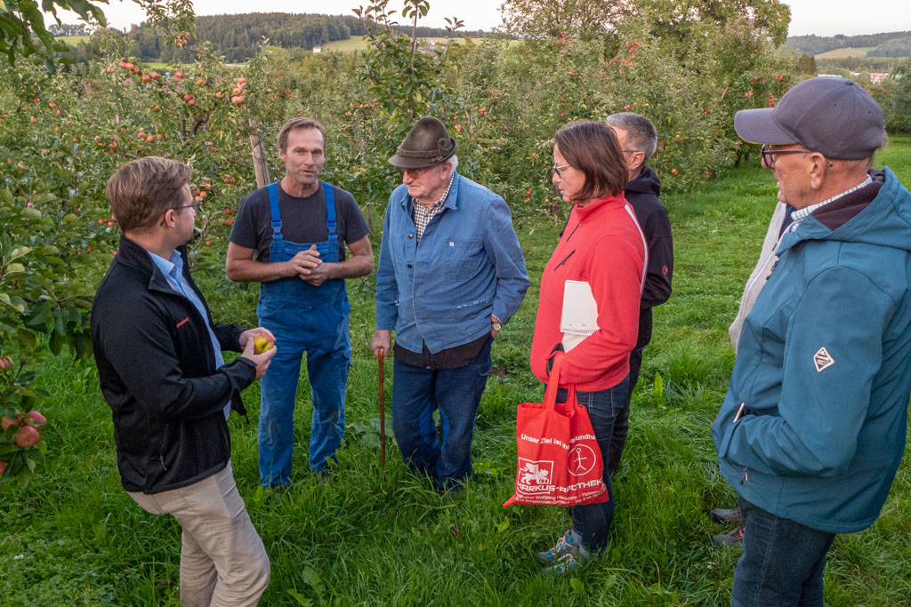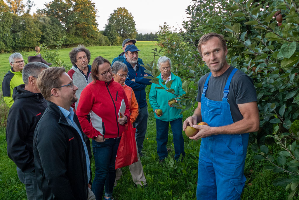 Familie Blank bewirtschaftet ihre Obstgärten integriert, das heißt, an erster Stelle steht der vorbeugende Pflanzenschutz durch Sortenwahl, jährlich angepasstem Schnitt und einer differenzierte Düngung. Hierzu gaben Rupert Blank und Kreisfachberater Markus Breier beim Rundgang mit rund 20 Teilnehmern hilfreiche Tipps für den Hausgarten.