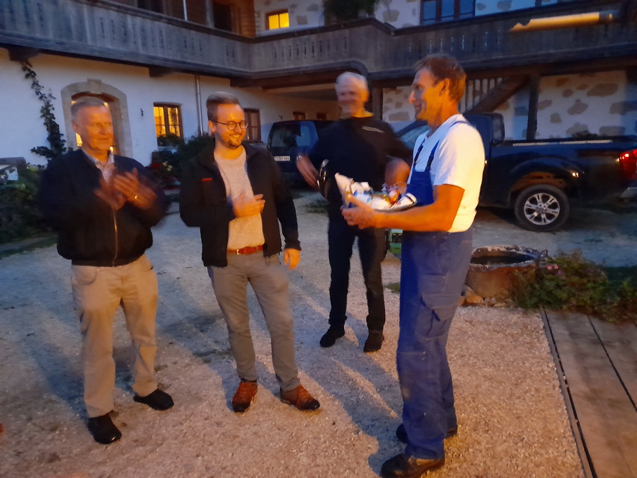 Zum Abschluss dankte Markus Breier mit einem Schmankerl-Korb (ohne Obst) für den wieder spannenden, lehrreichen und geschmackvollen Rundgang durch Rupert Blank.